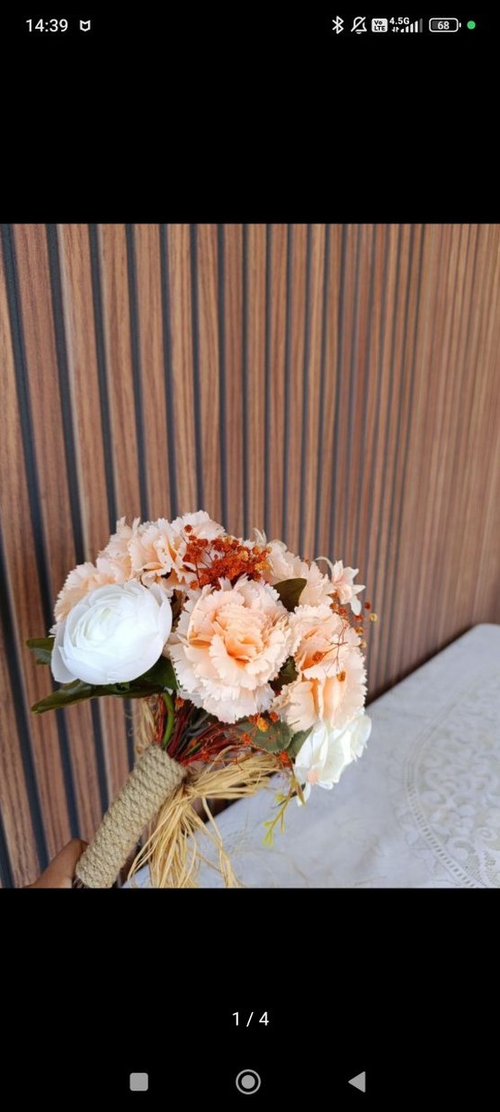 Bej Bohem Dantel Detaylı Gelin Buketi