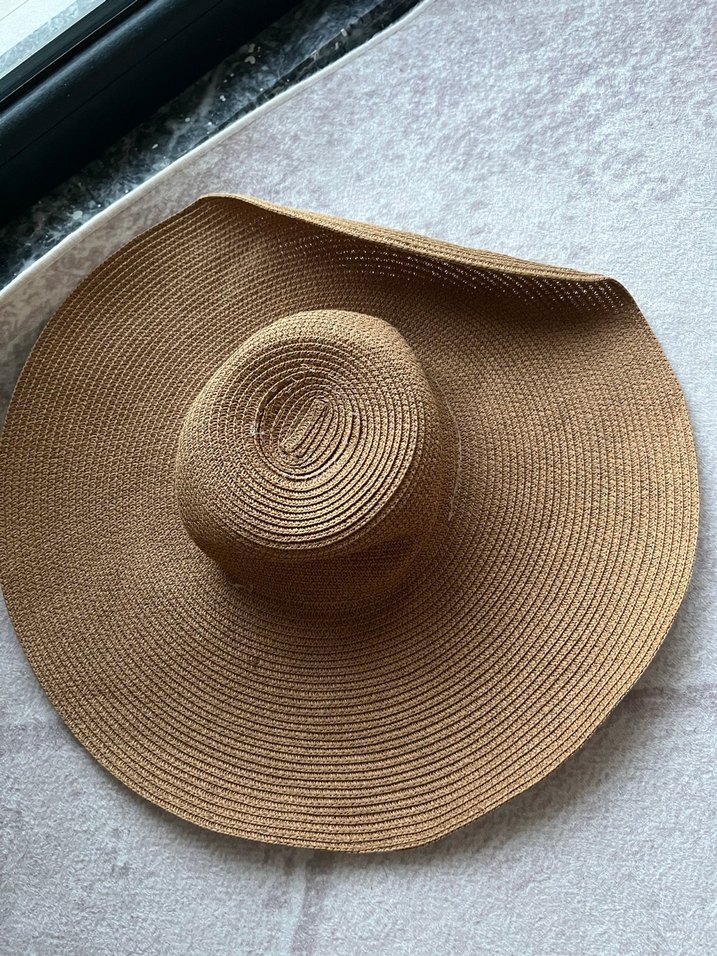 Bej renkte, geniş kenarlı, sentetik kumaştan yapılmış kadın şapkası. Bohem, hippie ve retro tarzı yansıtır, zahmetsiz şıklık sağlar.
