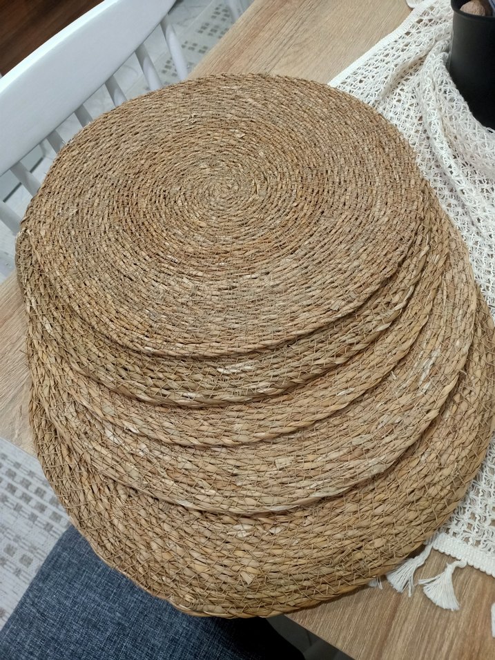 Bej renkli, doğal dokulu hasır supla seti, bohem tarzda masa düzeninize rustik bir dokunuş katar. ️