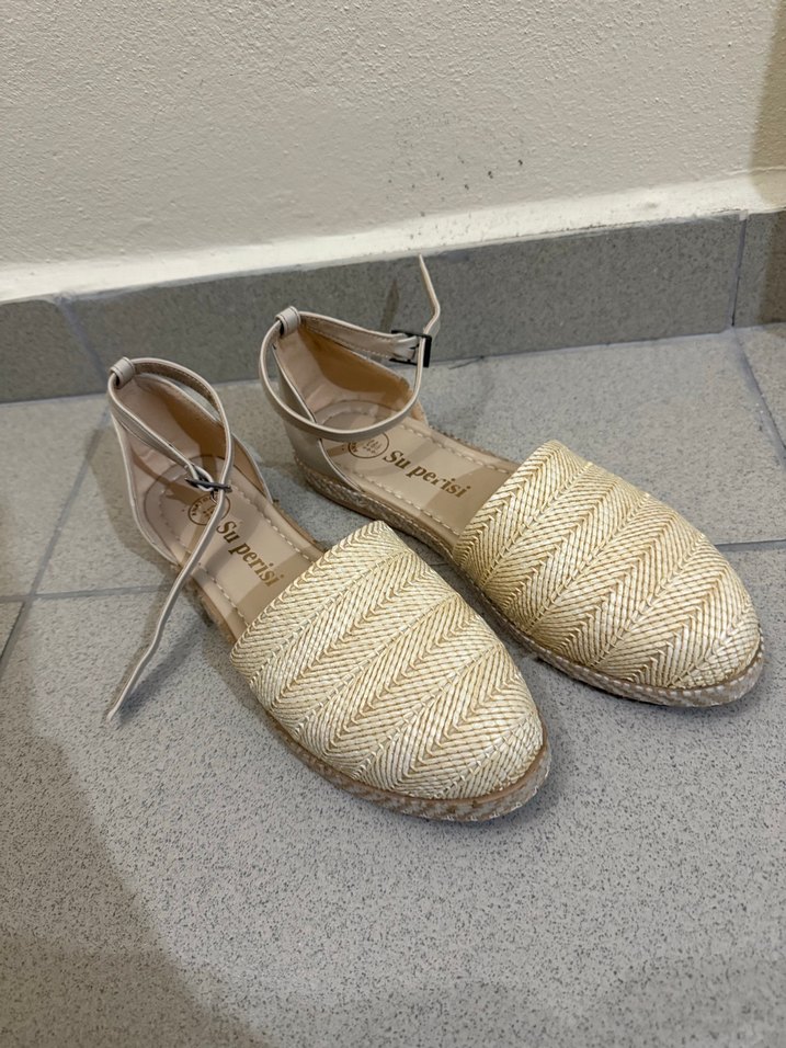 Bej renkli, dolgu topuklu, bohem tarzda, hafif yılan deseni ve kemer detaylı, günlük kullanıma uygun kauçuk kadın sandalet.
