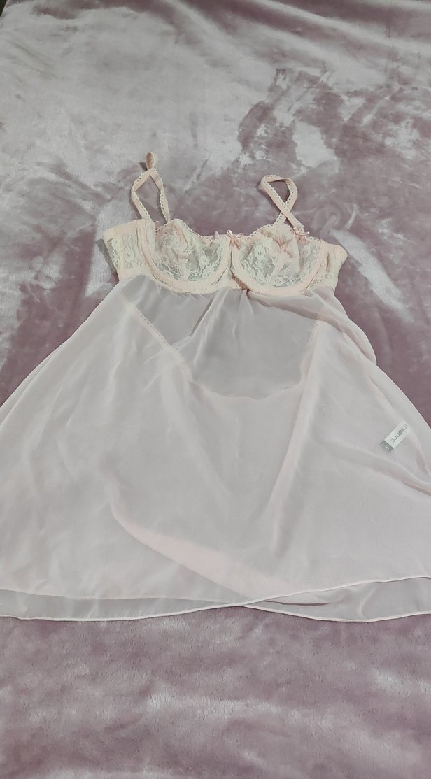 Bej renkte, askılı, midi uzunlukta ve bol kesim vintage esintili bohem tarzda gecelik. İnce dantel detaylarıyla şık bir görünüm sunar.