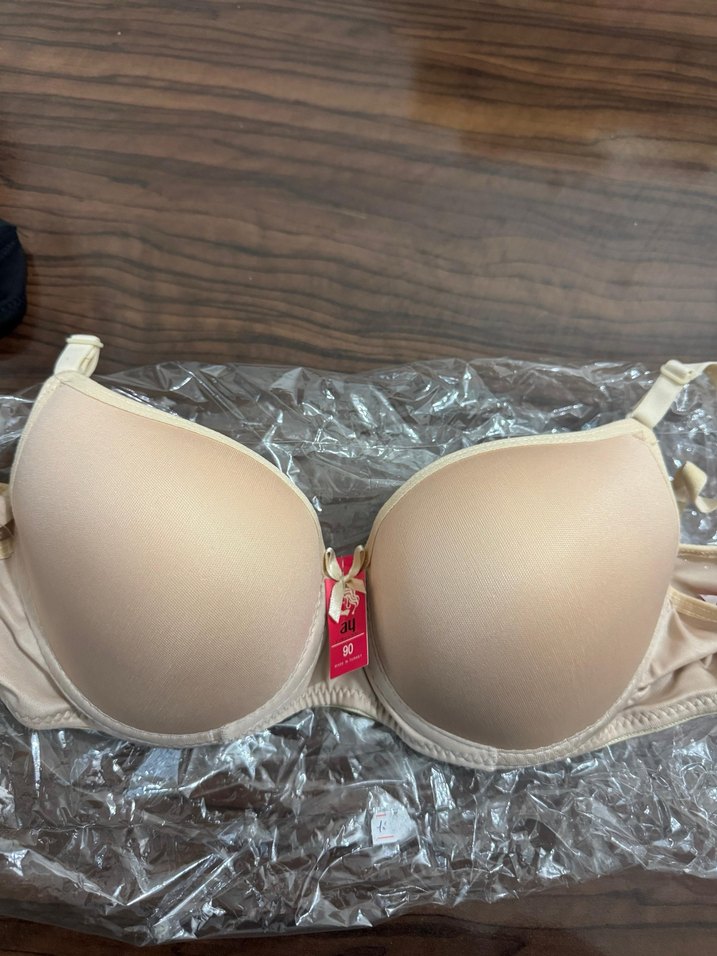 Açık bej renkte, desen içermeyen sütyen. Normal uzunlukta ve bohem tarzda, rahat destek sağlar.