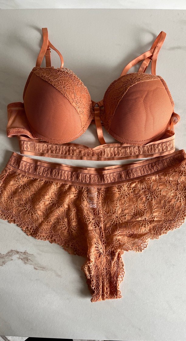 Bohem tarzda, koyu bej renkte, dantelli ve rahat uyumlu sütyen ile mini takım. Ayarlanabilir askılı ve destekli yapıya sahiptir. 75B