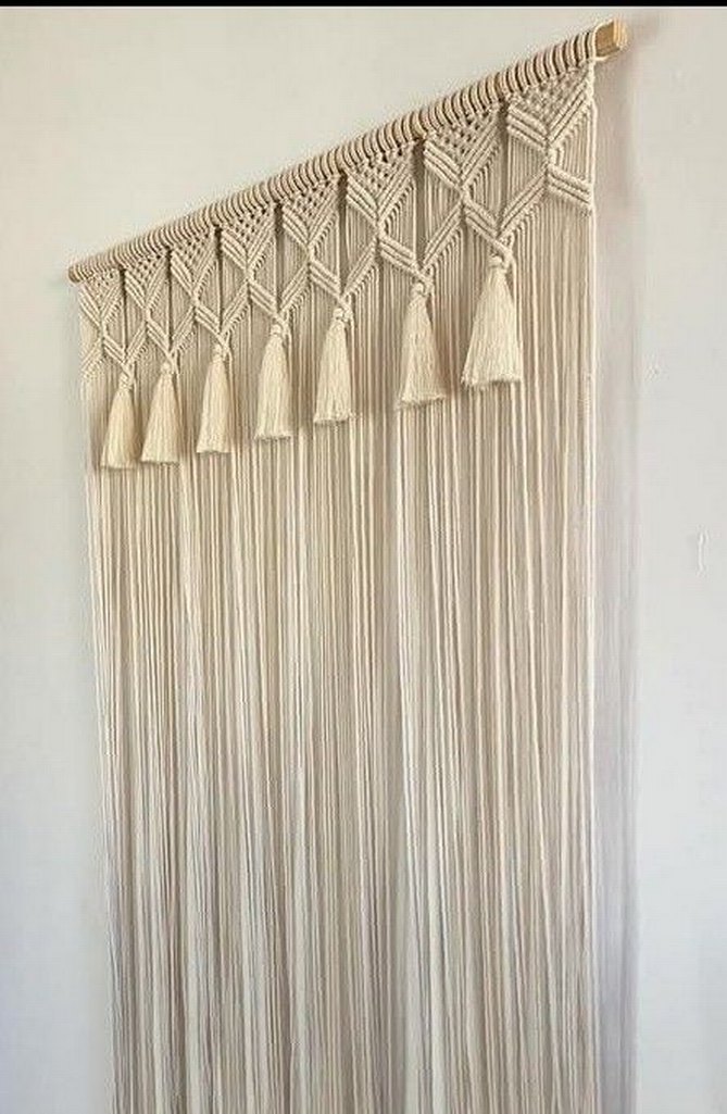 Nakışlı detaylar ve püsküllerle bej bohem perde, yumuşak ve akışkan bir tasarıma sahiptir. Her odaya sıcaklık katar.