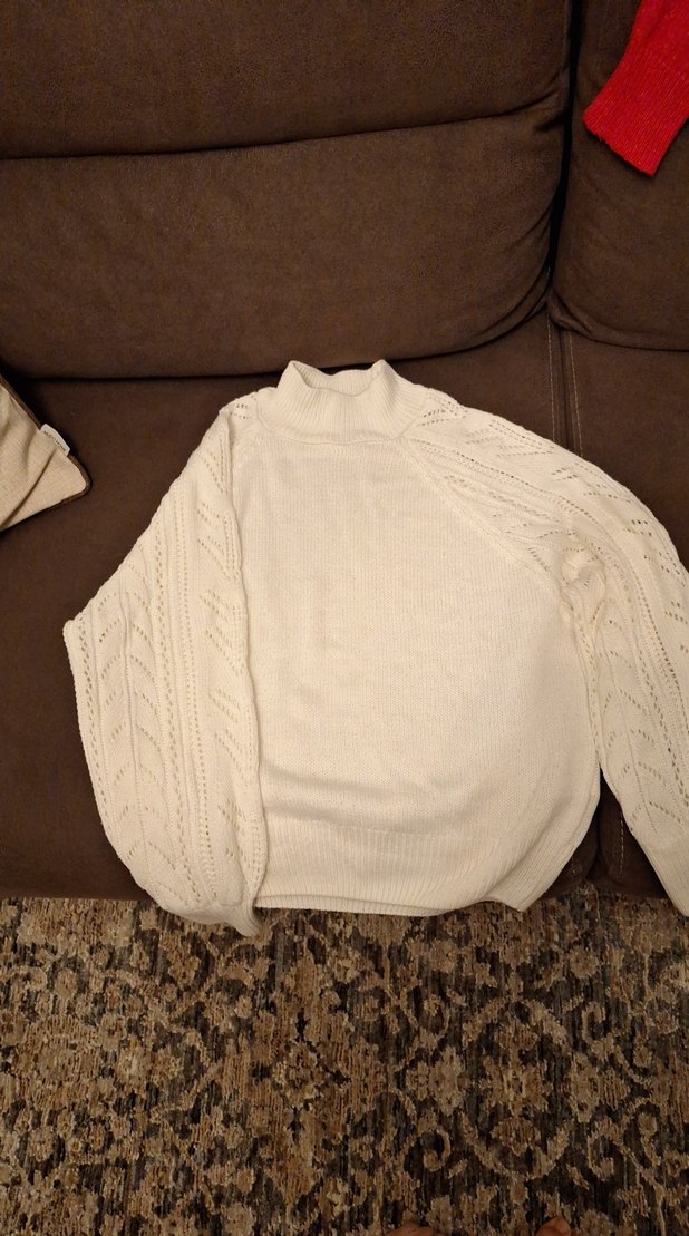 Bej renkte, örgü kumaştan, balıkçı yaka ve uzun kollu, bol kesim kadın kazak. Rahat ve günlük kullanıma uygun.
