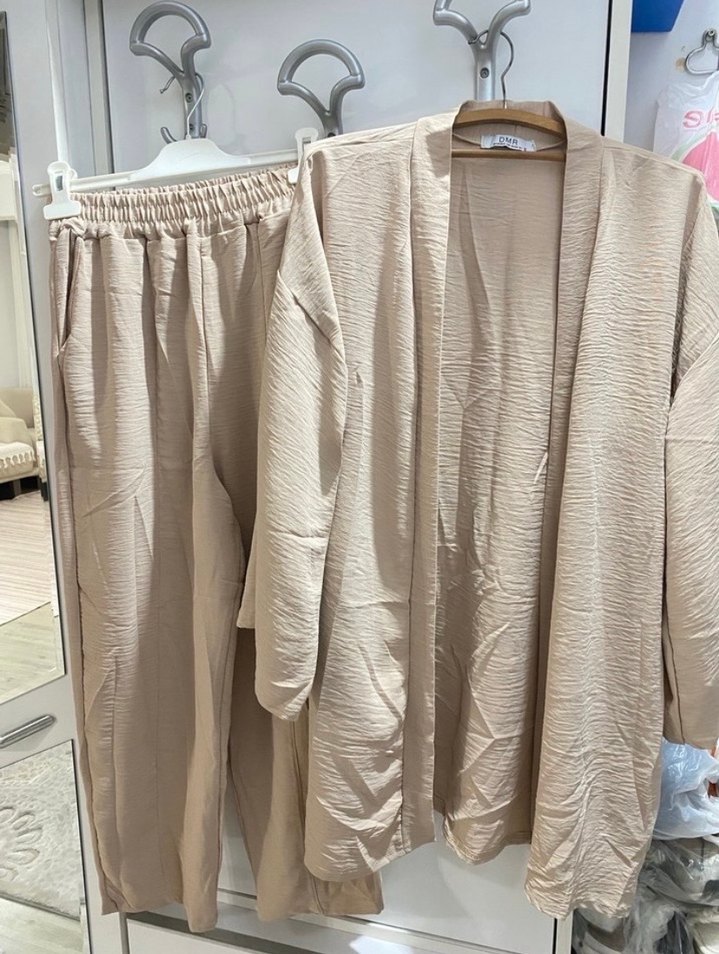 Bej Bohem Salaş Sabahlık ve Pantolon Takımı