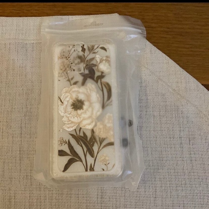Bu şeffaf telefon kılıfı, açık renkli bej bohem çiçek desenine sahiptir.