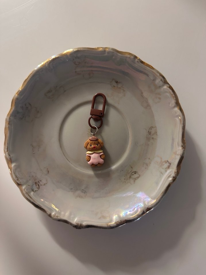Pastel tokalı, bej renkte, bohem tarzı kadın anahtarlık. Paris etkisi taşıyan vintage görünüm. ️