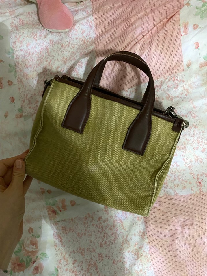 Pastel bej renkte, fermuarlı ve koyu renk saplı kadın çantası. Sentetik kumaştan, bohem ve trend günlük tarzlara uygun sadece belli belirsiz bir lekesi var belli olmuyor bile son fotografa ekledim
