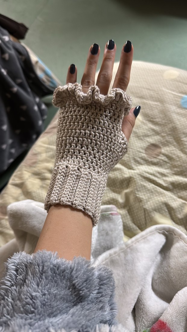 Bej Bohem Tarz Örgü Parmaksız Eldiven