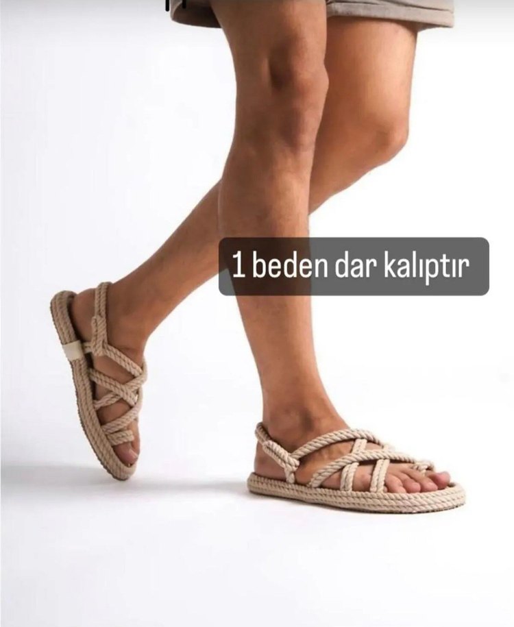 Bej renkte, kauçuk malzemeden yapılmış sade ve bohem tarzda unisex sandalet. 1 beden dar kalıptır.