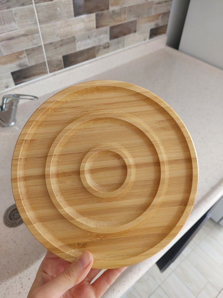 Açık tonlu, desensiz ve bohem tarzda bej renkli bambu tabak. Sunum veya dekorasyon için uygundur. ️