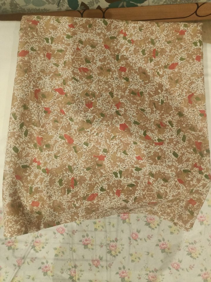 Bej renkte, yumuşak sentetik kumaştan yapılmış, vintage çiçek desenli ve bohem tarzda ince polyester kumaştır. En: 85, Boy: 2,90.