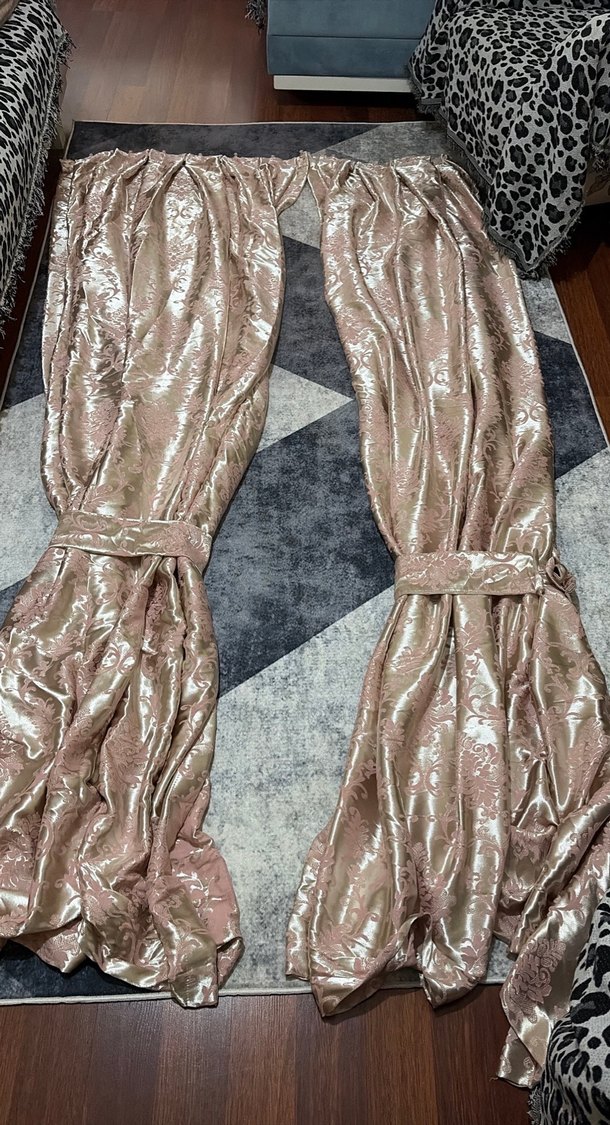 Bej renkli, bohem tarzda, hafif tie-dye desenli ve yumuşak dokulu fon perdeler. Odaya rahat ve sanatsal bir hava katar.