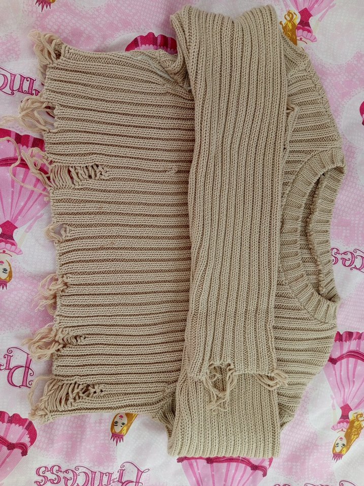 Bej renkli, uzun kollu, bohem tarz örgü kadın kazak. Vücuda oturan kesimi, yuvarlak yaka ve püskül detaylarıyla sıcak ve rahat bir görünüm sunar.