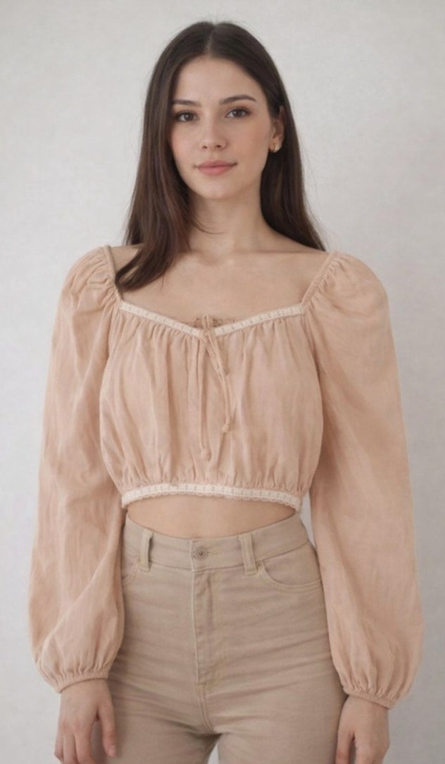 Bej Bohem Uzun Kollu Kadın Bluz