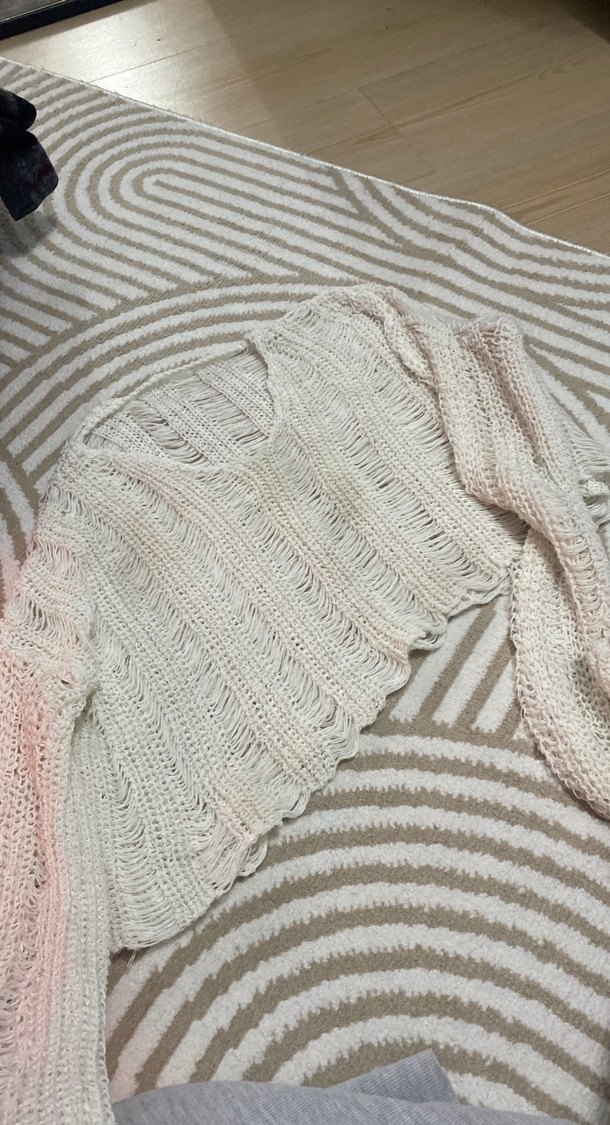 Bej renkte, örgü kumaştan yapılmış, uzun kollu ve salaş kesime sahip bohem tarzda kadın kazak.