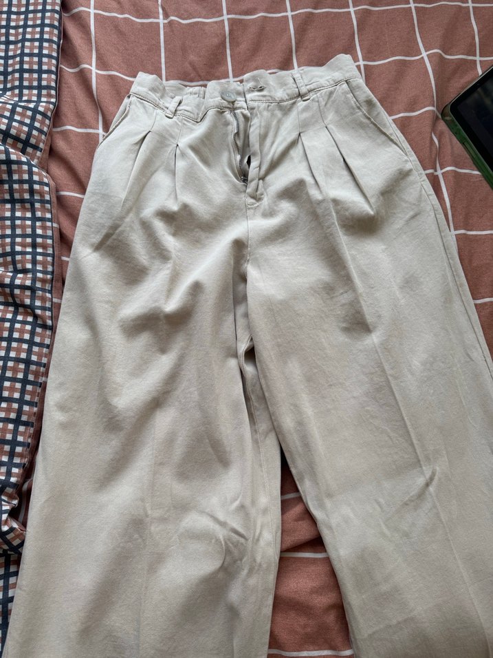 Bej Bol Kesim Kadın Keten Pantolon