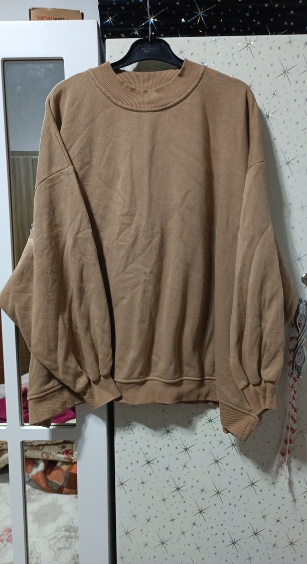 Bej renkte, bol kesim ve yuvarlak yakalı bu sweatshirt, uzun kolludur. Yumuşak keten kumaştan yapılmış, rahat ve şık bir günlük sokak giyimi tarzı sunar. Desensiz ve pastel tonludur.
