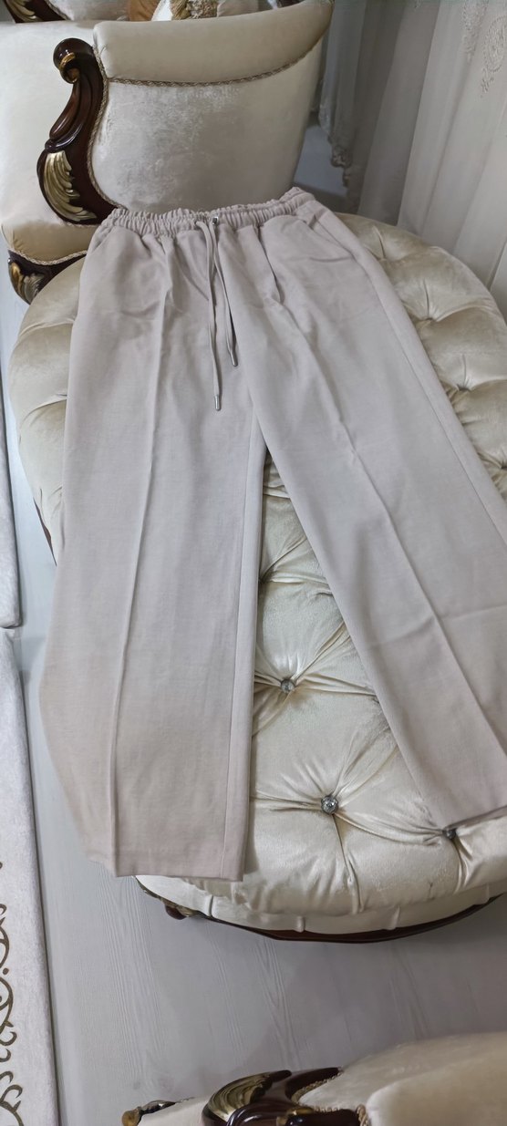 KAROL pantolon Bej renkte, bol kesim keten kumaştan, pileli ve lastikli bel, bej rengi