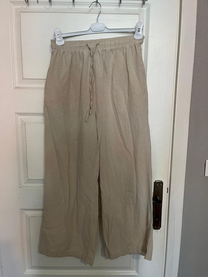 Bej Bol Kesim Keten Kadın Pantolon