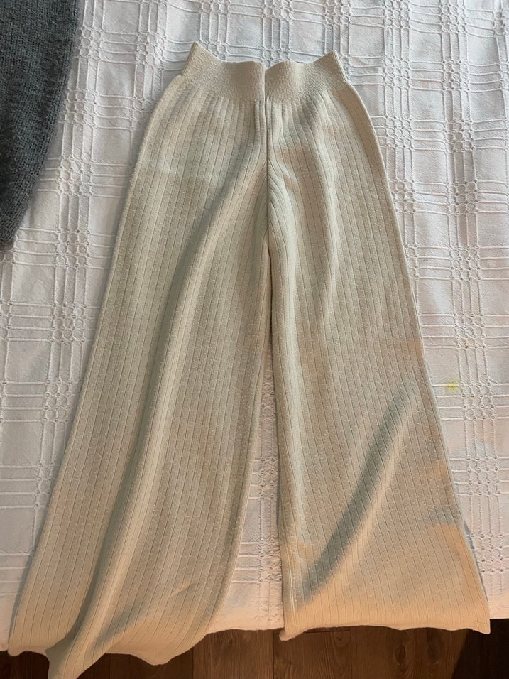 Bej Bol Kesim Pileli Triko Kadın Pantolon