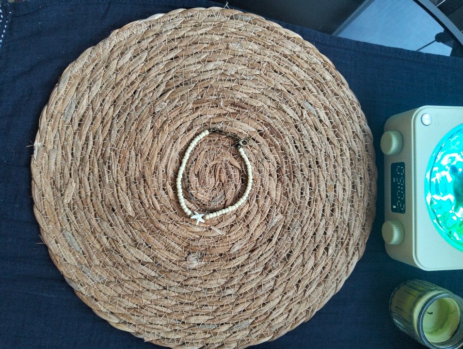 Bej boncuklardan oluşan bohem tarzda halhal, yıldız detayına sahiptir. Günlük kullanıma uygun, rahat ve retro bir görünüme sahiptir.Uzatma zinciri olduğu için ayağınıza göre ayarlayabilirsiniz.