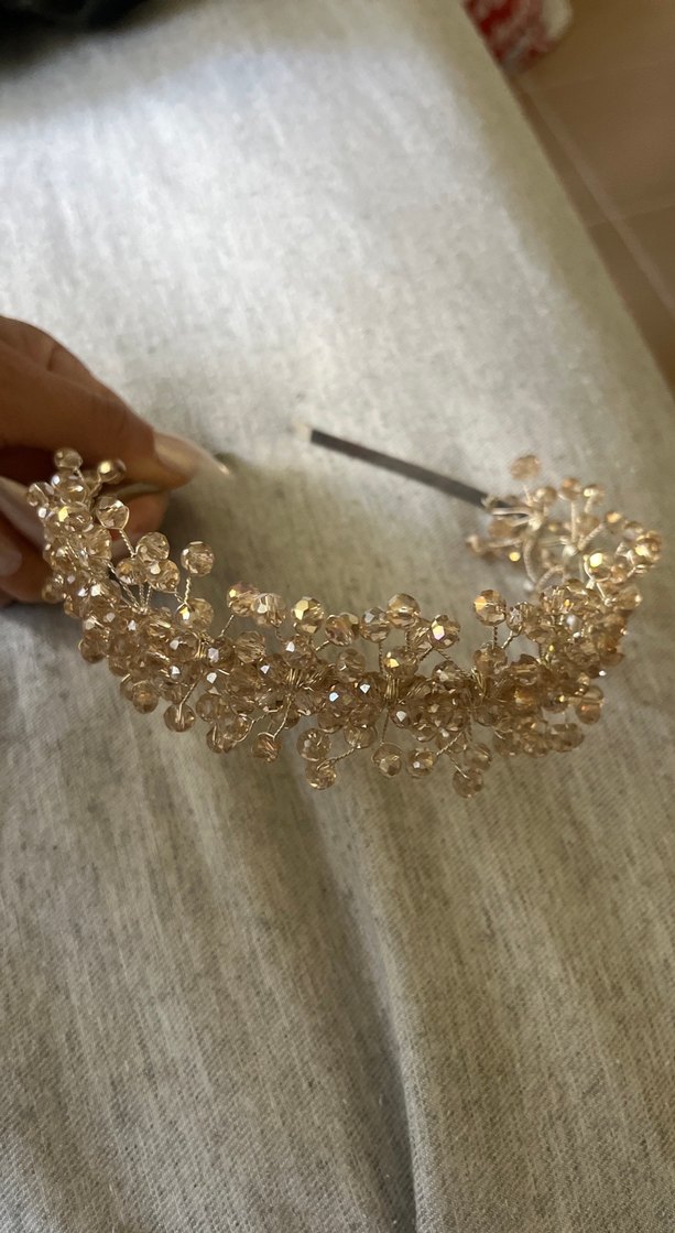 Bej renkli, cam boncuklarla bezenmiş, bohem tarzda şık bir saç aksesuarı. Zarif ve klasik bir görünüm sunar.