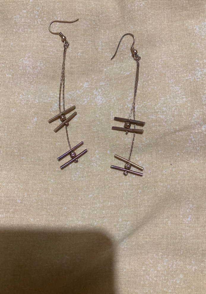 Minimalist ve avangart tasarımlı, gündelik kullanıma uygun bej boncuklu midi kadın küpe. Gri detaylarla kontrkültür tarzını yansıtıyor.