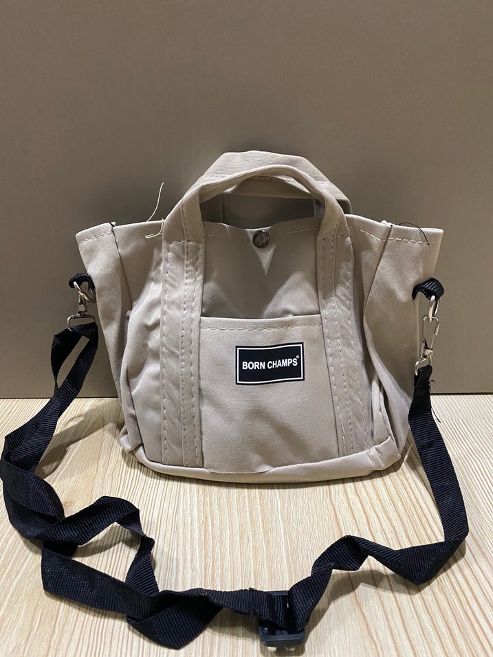 Bej renk Born Champs kol çantası, sade tasarımlı ve çıkarılabilir siyah askıya sahip. Önde logo patch ve çıtçıt kapama bulunur.