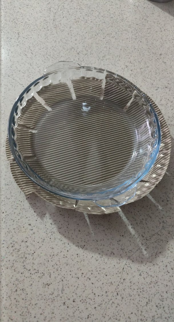Klasik tarzda, dokulu kenarlı, bej renkte yuvarlak cam servis tabağı. ️bir adet fiyatı