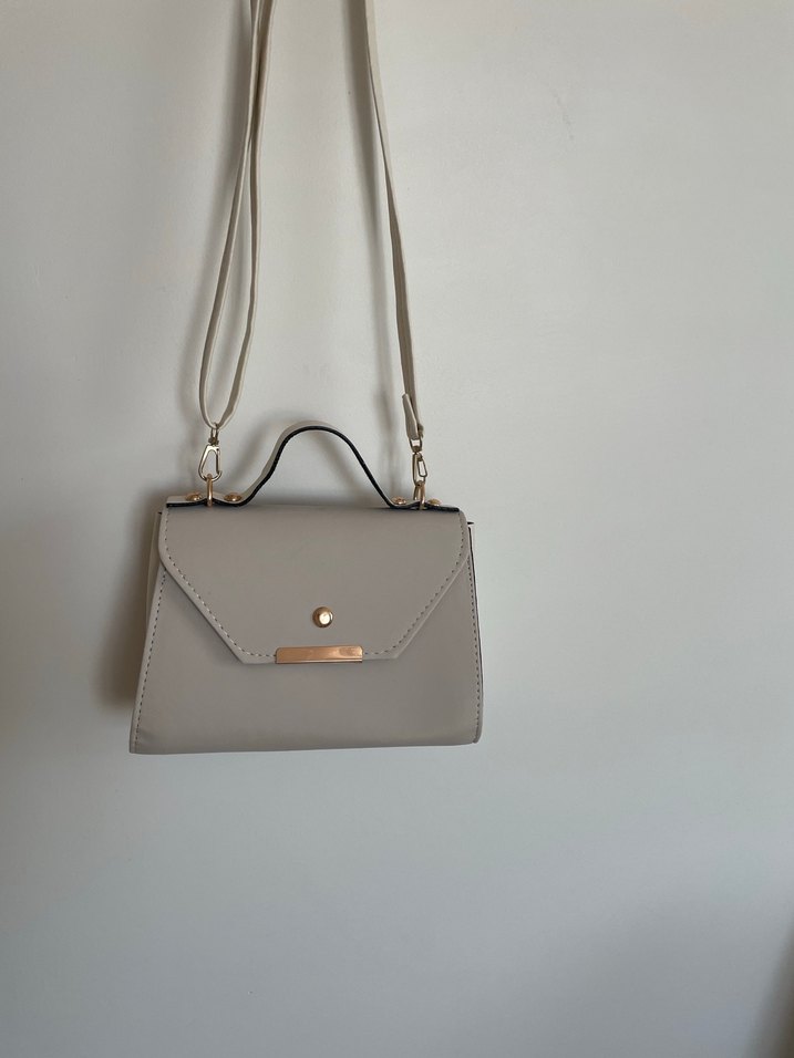 Krem rengi çanta. Hiç kullanılmadı, sıfırdır. 5.fotoğrafta kısa kulpunda siyah leke var. Aldığımda vardı lekeler. Fotoğrafta gözüken siyahlıklardan başka bir sorunu yok. İade edemediğim için satılık. Hiç kullanılmadı