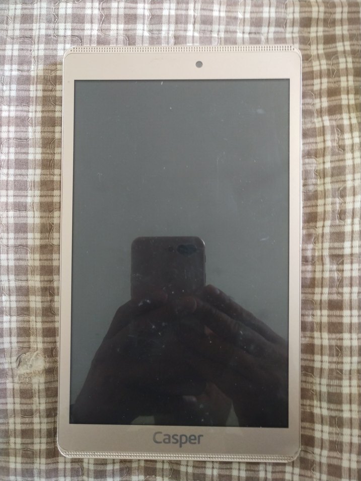 Ön kameralı ve 7 inç ekranlı bej Casper tablet. Kompakt ve hafif tasarım. durumu bilinmiyor açılmıyor iade kabul etmiyorum