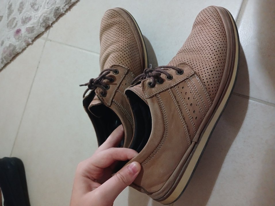 Gri tonlu, bej renkte erkek casual ayakkabı bağcıkları. Delikli deri ayakkabılarla uyumludur. 41 numara