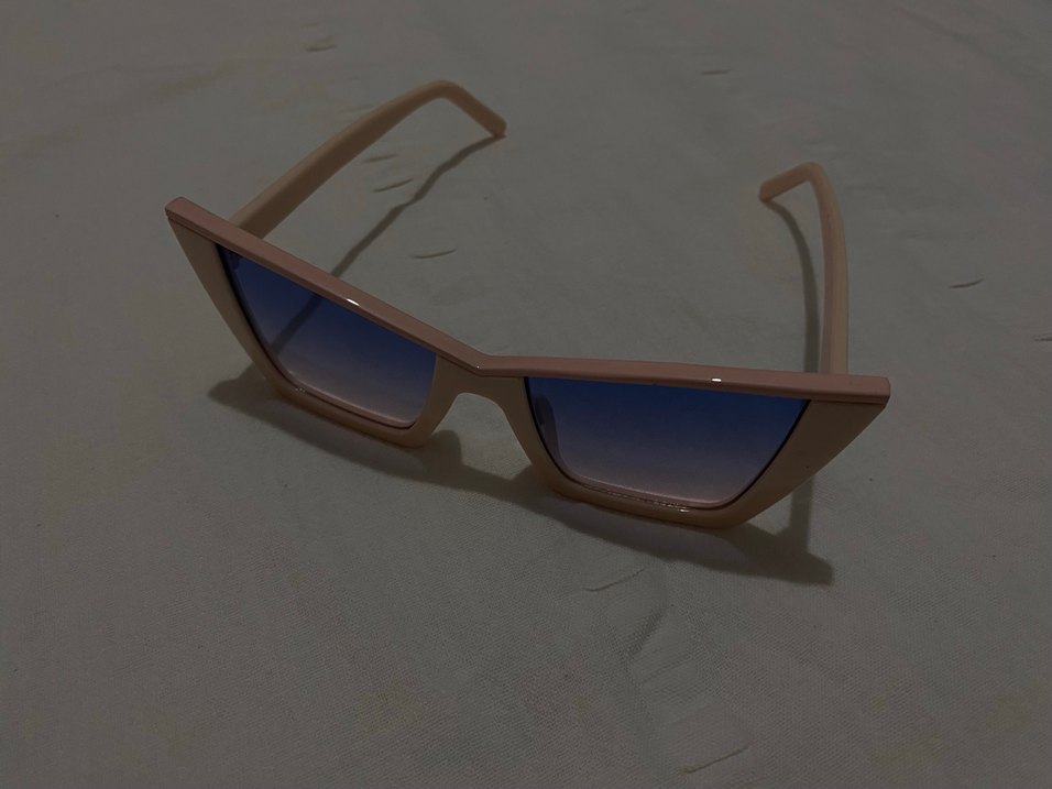 Bej çerçeve ve koyu degrade camlara sahip kadın güneş gözlüğü, modern sokak stilini yansıtır ve zahmetsiz şıklık sunar. Trendy ve rahat kullanım için uygundur.