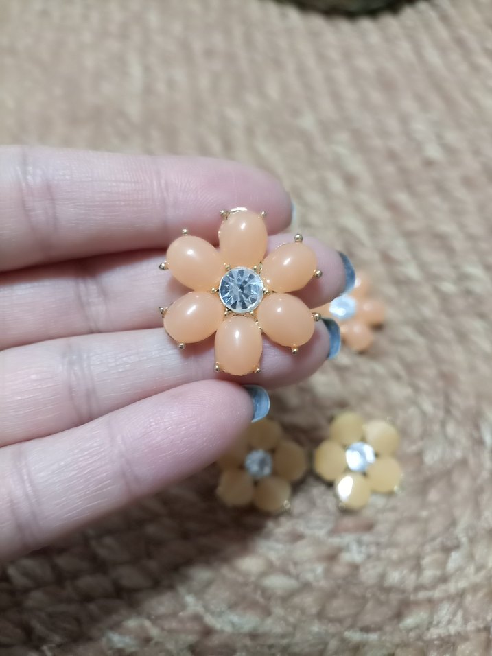 Bej renkli, pastel tonlarda boncuklu çiçek desenli kupeparlak taşlı ortasıyla bohem tarzda şık bir aksesuar.