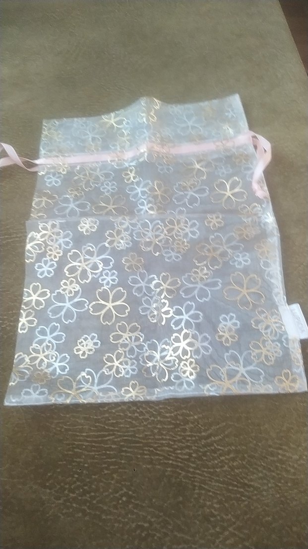 Bej renkte, pastel çiçek desenli ve pembe bağcıklı bez.torbar. Hafif ve kullanışlıdır.