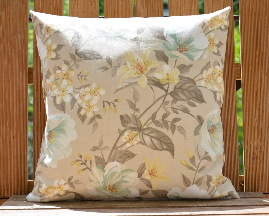 Bej Çiçek Desenli Dekoratif Kırlent Kılıfı