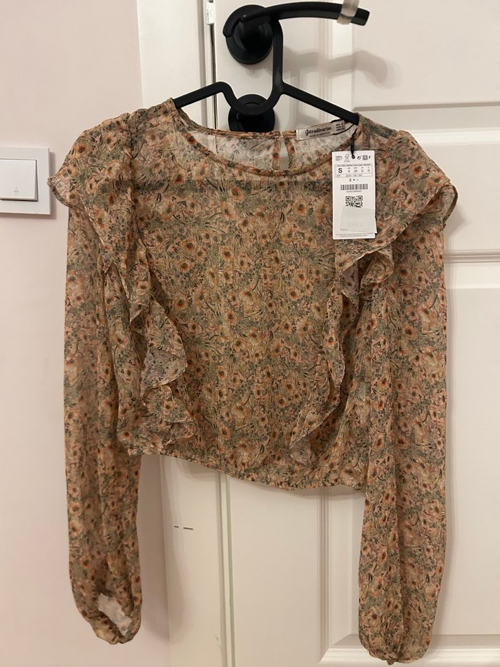 Bej renkli, çiçek desenli ve fırfırlı detaylara sahip bohem tarzda kadın bluz. Bol kesim, uzun kollu ve yuvarlak yakalıdır. Günlük kullanıma uygun yumuşak sentetik kumaştan üretilmiştir. Eteği de var. Diğer ürünlerde görebilirsiniz