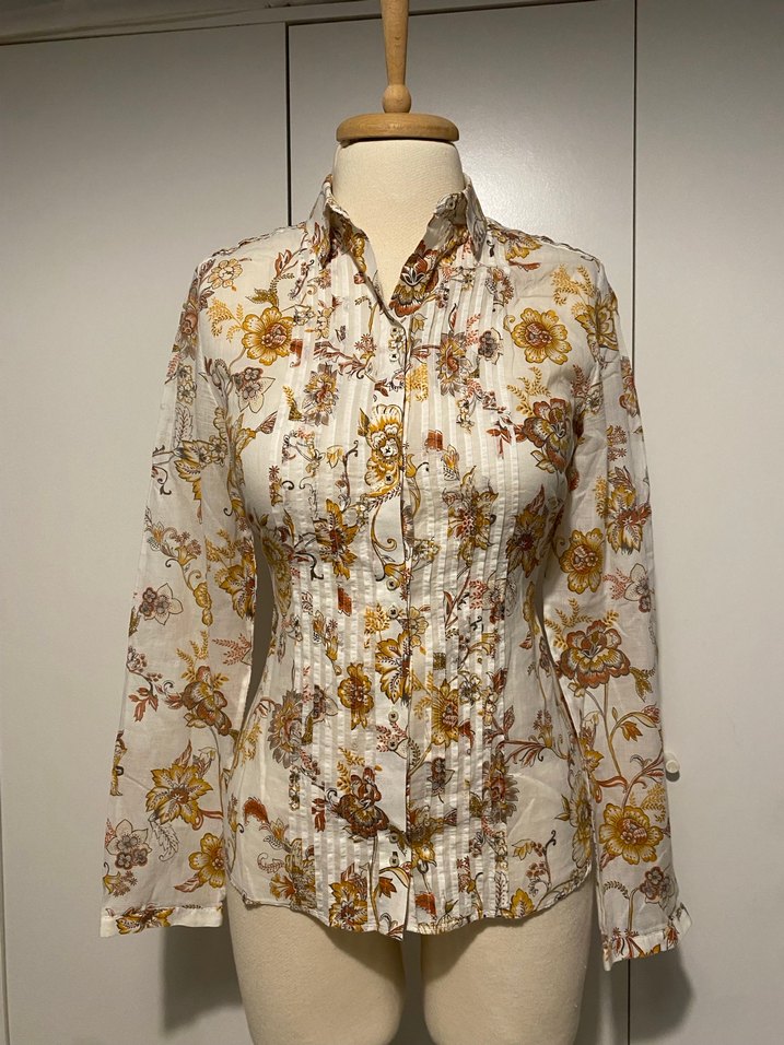 Bej renkli, çiçek desenli, yakalı ve düğmeli bohem tarzda kadın gömleği. Uzun kollu ve vücuda oturan kesime sahip, ofis için uygun. TAKASA AÇIK ✅ Az kullanılmıştır yeni ve temizdir. Herhangi bir sorunu yoktur. Orijinal ve defosuzdur. Tüm sorularınızı sorabilirsiniz. 24 saat içerisinde kargoya verilecektir.