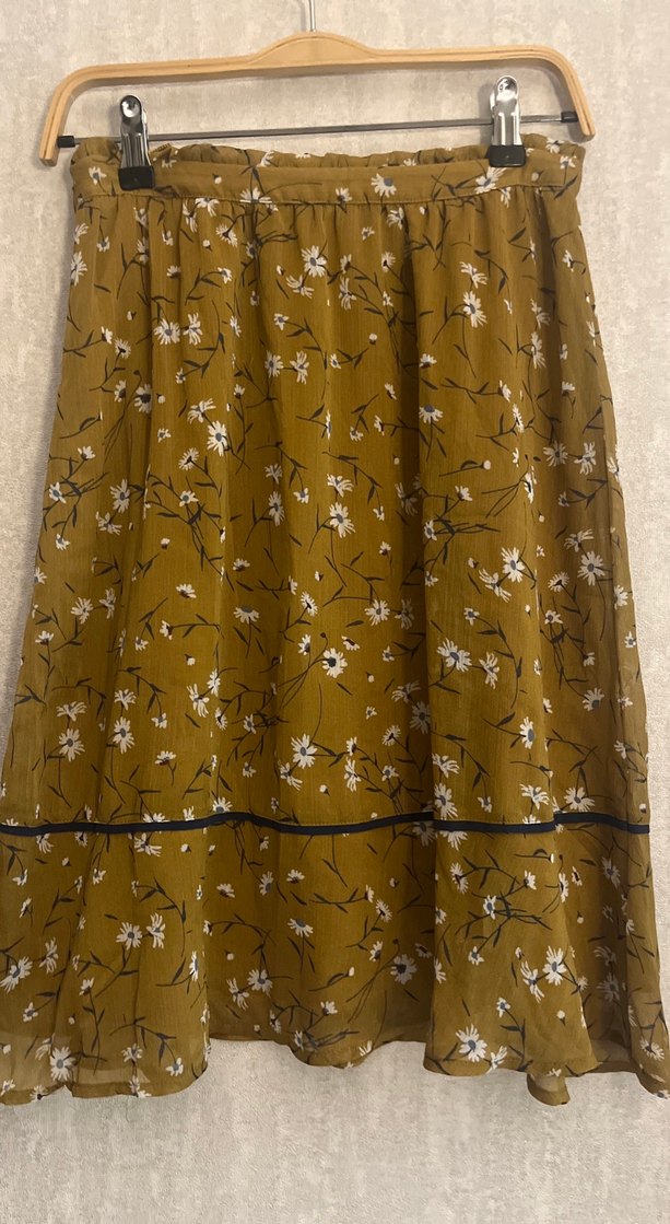 Bej renkte, çiçek desenli ve bol kesim midi uzunluğunda yumuşak kumaştan bohem etek.