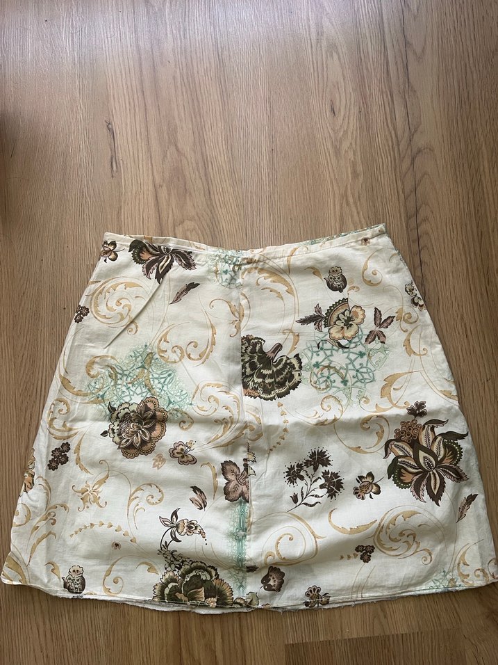 Bej renkte, çiçek desenli mini uzunlukta, bol kesim bir etektir.