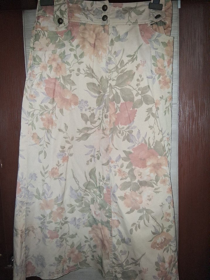 Bej Çiçek Desenli Uzun Bohem Etek