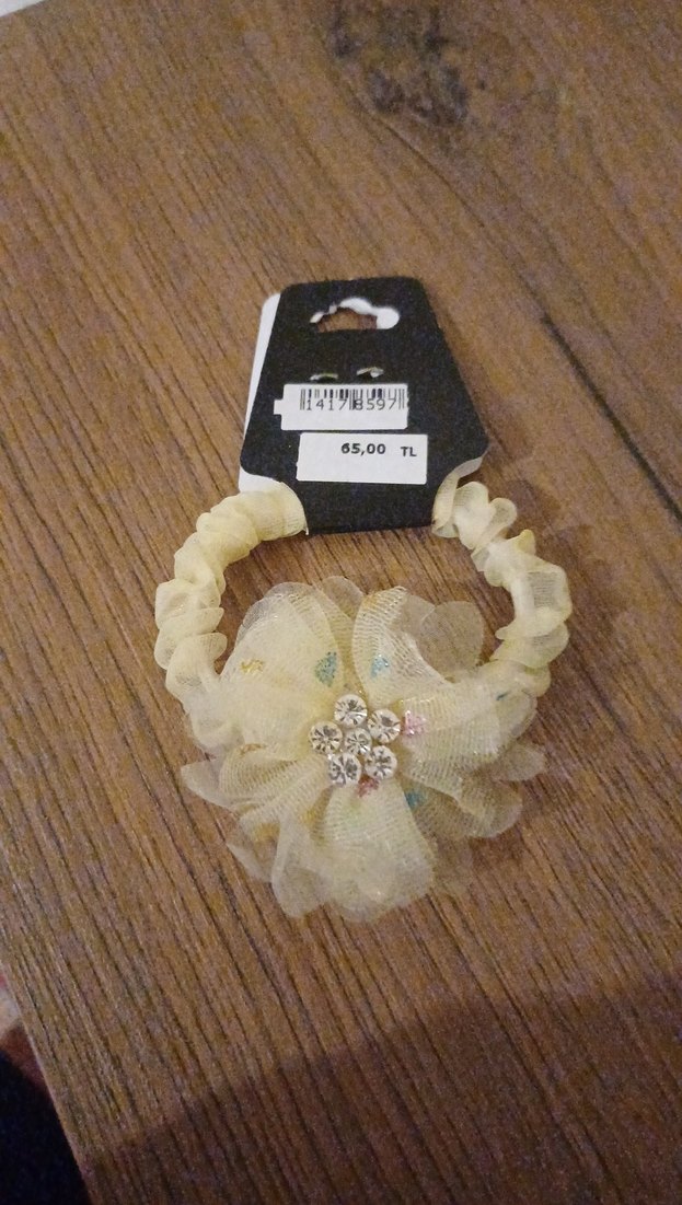 Bej renkte elastik saç bandı, üzerinde çiçek desenli dekoratif bir çiçekle bohem tarzı sunar.