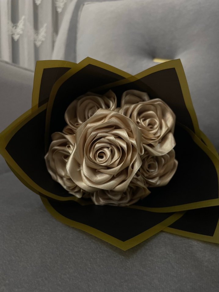 Bej renkte, çiçek desenli ve fırfırlı kadın broş. Klasik zarafeti modern Paris tarzıyla buluşturur. Düğün ve özel günler için uygun.