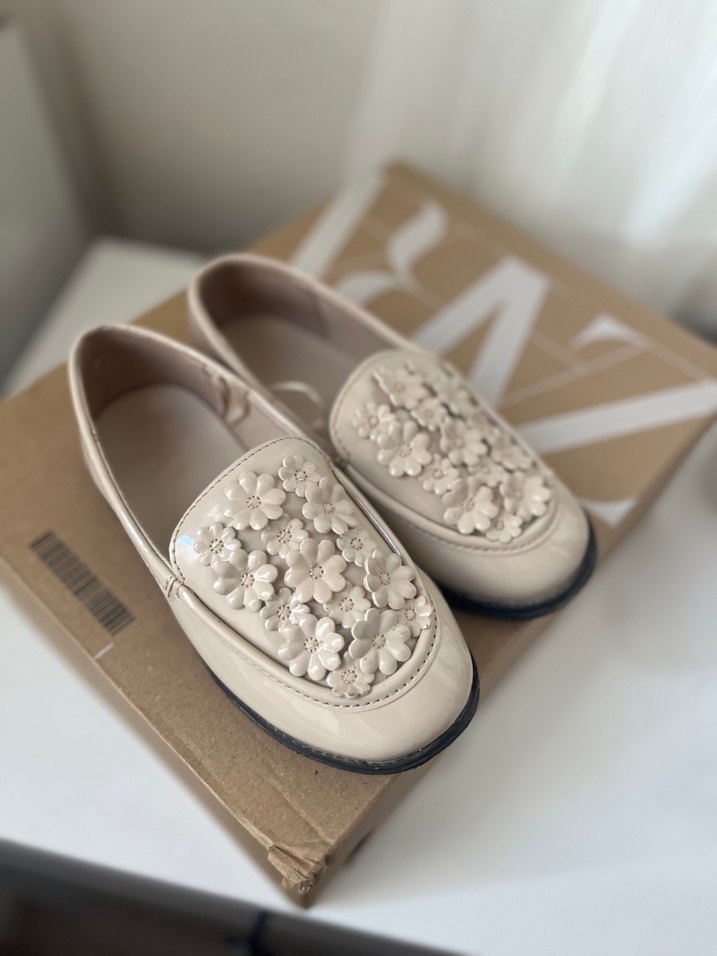 Bej Çiçekli Kız çocuk Loafer Ayakkabı
