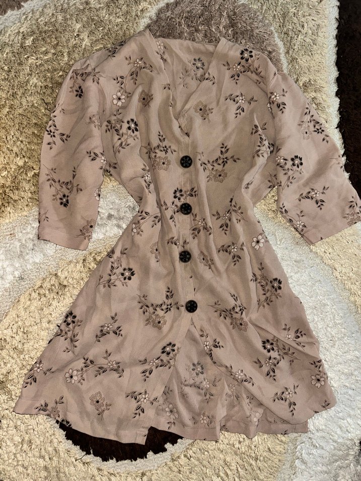 Bej Çiçekli Uzun Bohem Kadın Elbise