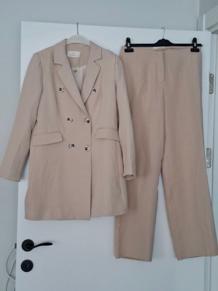 Bej renkli, uzun kesim kadın blazer, kesik yakalı ve çift düğmeli tasarıma sahiptir. Sentetik kumaştan üretilmiş olup, ofis için uygundur. NOT:VATKA KISMINDA MAKİNEYE ATILMADAN DOLAYI BÜZÜLME VAR ÜTÜLERSENİZ DÜZELİR