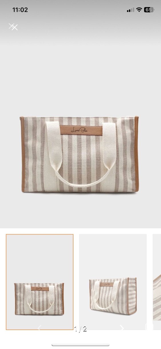 Bej renkli, çizgili desene sahip sentetik kumaş kadın çanta. Bohem tarzı ve zahmetsiz şıklığıyla günlük kullanıma uygundur. Hiç kullanılmadı.