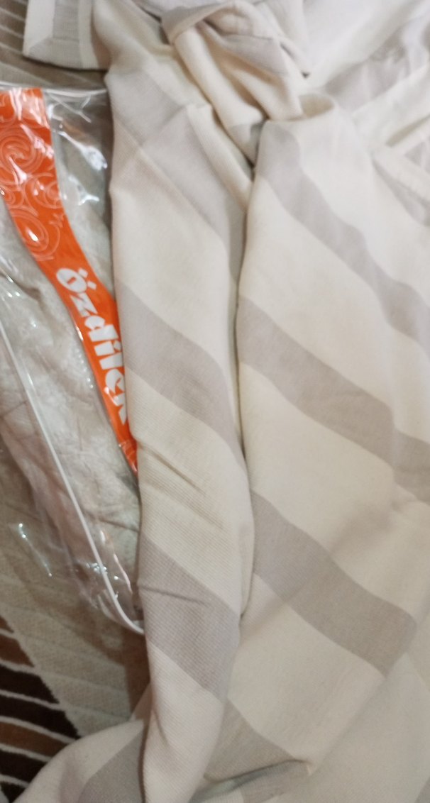 Bej renkte, yumuşak yüzde yüz pamuk koton kumaştan yapılmış ve hafif çizgili desene sahip pike takımı sade ve şık bir görünüm sunar ️. yatak örtüsü olarak sayılı serildi
